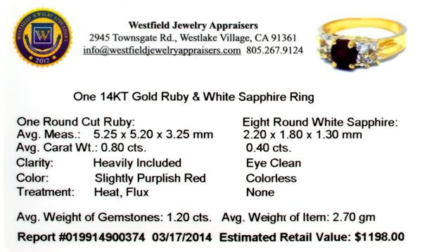 APP: 1.2k 14 kt. Gold, 1.20CT Ruby And White Sapphire Ring