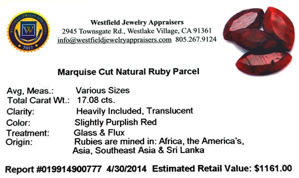17.08CT Marquise Cut Ruby Parcel