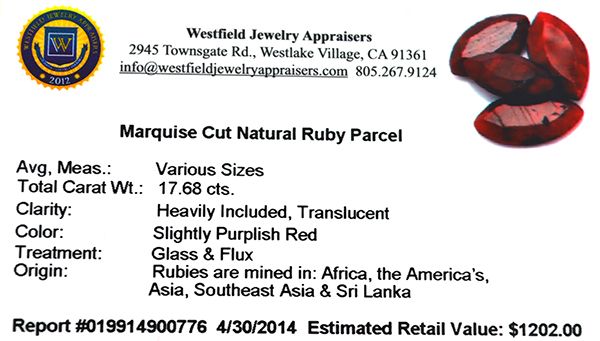 GovernmentAuction.com utilizes Retail Replacement Value Appraisals, which are the most common. These types of evaluations are written for insurance needs. This would be the cost to replace the jewelry, with an item of equal quality and kind, considered to be the current market price or the replacement value. This type of appraisal is done to protect you in the event of damage or loss of a valuable item. Our appraisals are conducted by and independent 3rd Party appraisal firm that utilizes Certified GIA Gemologist, if more information is needed you are welcome to contact them directly: Gemological Laboratory of America- info@gemlabamerica.com. Appraisals should be used for verification of gemstone and/or metal weight, size, and grade only, not actual value. Appraisal value should be considered for insurance purposes only, not actual value, as price varies greatly from retail locations through-out the world. Items should not be purchased with the expectation to resell for appraisal price or for profit.