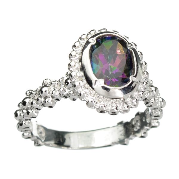 2.00CT Oval Cut Mystic Topaz And Platinum Over Sterling Silver Ring