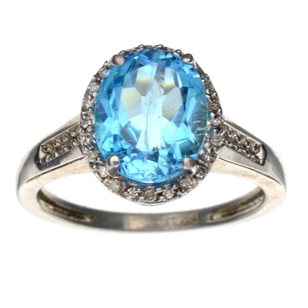 3.22CT Blue Topaz and Diamond Platinum Over Silver Ring