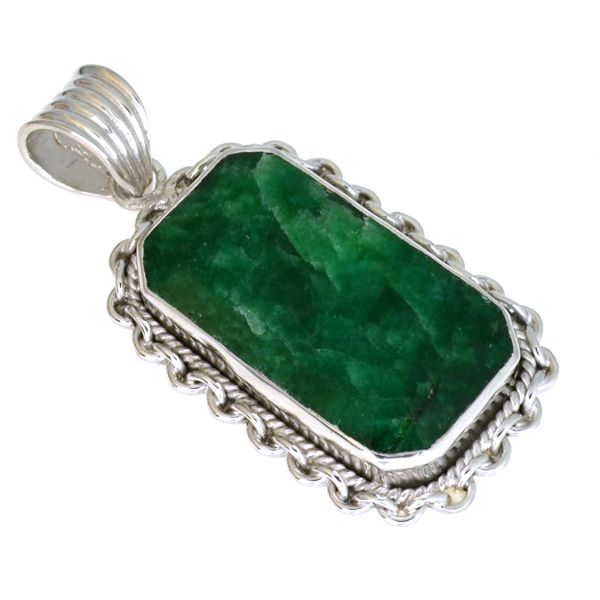 59.16CT Emerald Cut Emerald And Sterling Silver Pendant