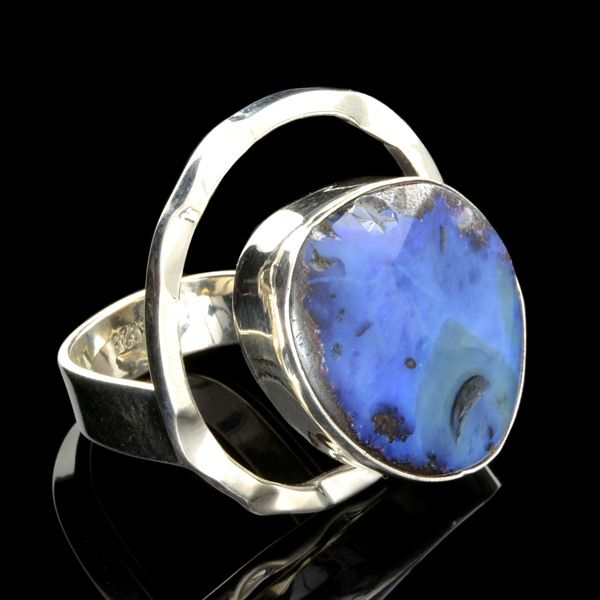 8.90CT Natural Freeform Boulder Opal And Platinum Over Sterling Silver Ring