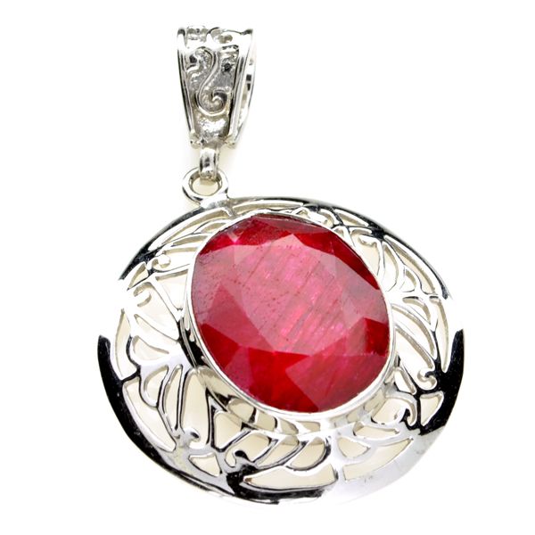 Designer Sebastian 19.40CT Oval Mixed Cut Ruby and Sterling Silver Pendant