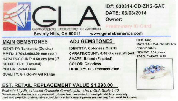 0.60CT Tanzanite And Quartz Platinum Over Sterling Silver Ring