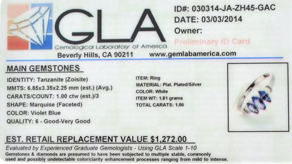 1.00CT Marquise Cut Tanzanite And Platinum Over Sterling Silver Ring