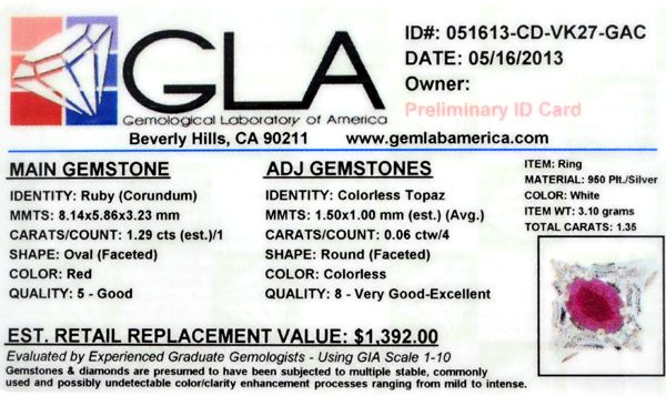 GovernmentAuction.com utilizes Retail Replacement Value Appraisals, which are the most common. These types of evaluations are written for insurance needs. This would be the cost to replace the jewelry, with an item of equal quality and kind, considered to be the current market price or the replacement value. This type of appraisal is done to protect you in the event of damage or loss of a valuable item. Our appraisals are conducted by and independent 3rd Party appraisal firm that utilizes Certified GIA Gemologist, if more information is needed you are welcome to contact them directly: Gemological Laboratory of America- info@gemlabamerica.com. Appraisals should be used for verification of gemstone and/or metal weight, size, and grade only, not actual value. Appraisal value should be considered for insurance purposes only, not actual value, as price varies greatly from retail locations through-out the world. Items should not be purchased with the expectation to resell for appraisal price or for profit.