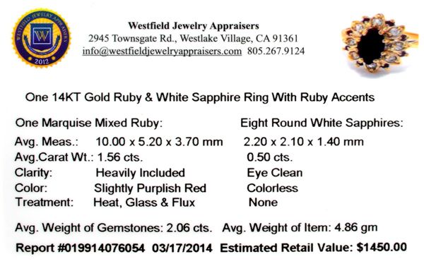 APP: 1.4k 14 kt. Gold, 2.06CT Ruby And White Sapphire With Ruby Accents Ring