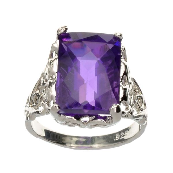 7.68CT Rectangle Cut Amethyst Quartz And Platinum Over Sterling Silver Ring
