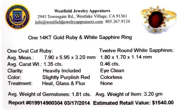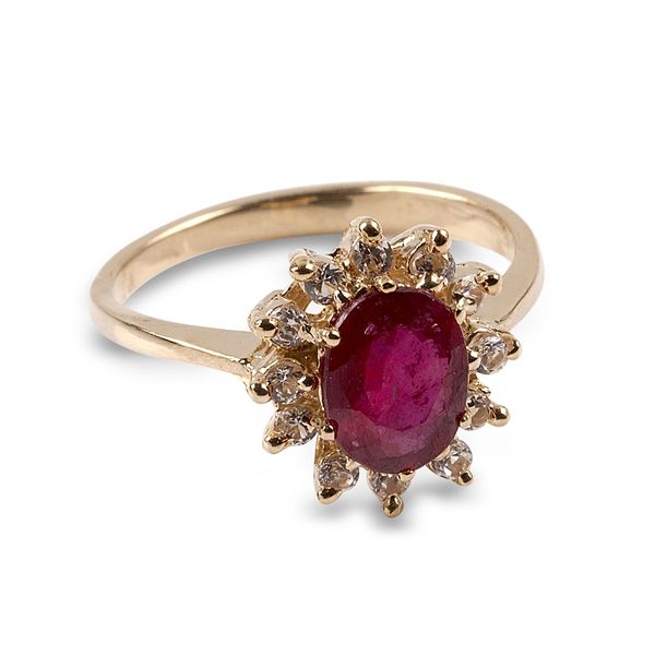14 kt. Gold, 1.81CT Ruby And Whte Sapphire Ring