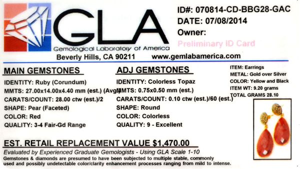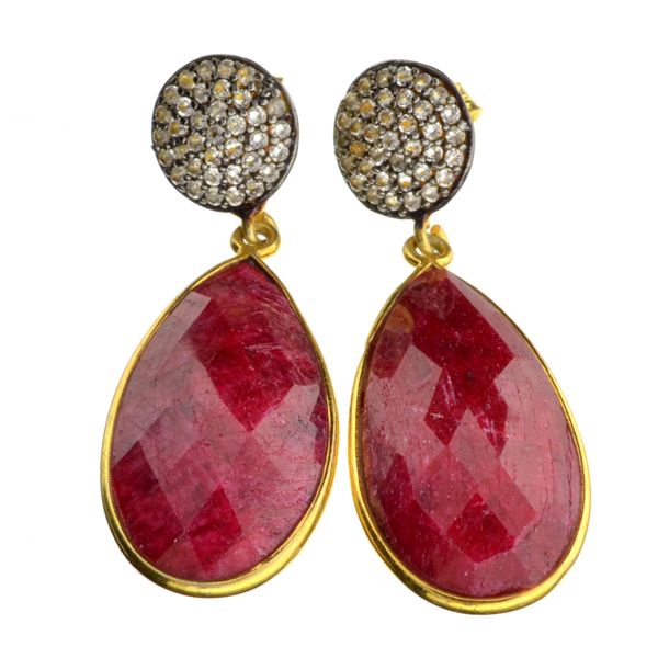 28.00CT Ruby And Topaz Gold Over Sterling Silver Earrings