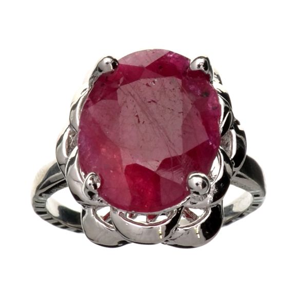 5.71CT Oval Cut Ruby And Platinum Over Sterling Silver Ring