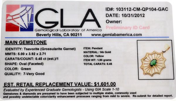 14 kt Gold 0.45CT Oval Cut Tsavorite Pendant