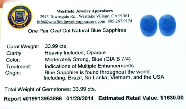 GovernmentAuction.com utilizes Retail Replacement Value Appraisals, which are the most common. These types of evaluations are written for insurance needs. This would be the cost to replace the jewelry, with an item of equal quality and kind, considered to be the current market price or the replacement value. This type of appraisal is done to protect you in the event of damage or loss of a valuable item. Our appraisals are conducted by and independent 3rd Party appraisal firm that utilizes Certified GIA Gemologist, if more information is needed you are welcome to contact them directly: Gemological Laboratory of America- info@gemlabamerica.com. Appraisals should be used for verification of gemstone and/or metal weight, size, and grade only, not actual value. Appraisal value should be considered for insurance purposes only, not actual value, as price varies greatly from retail locations through-out the world. Items should not be purchased with the expectation to resell for appraisal price or for profit.