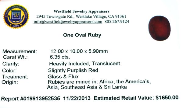 6.35CT Oval Cut Ruby Gemstone
