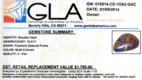 15.41CTGrams Natural Form Boulder Opal Gemstone