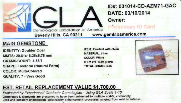 4.85CT Natural Freeform Boulder Opal Pendant With Chain