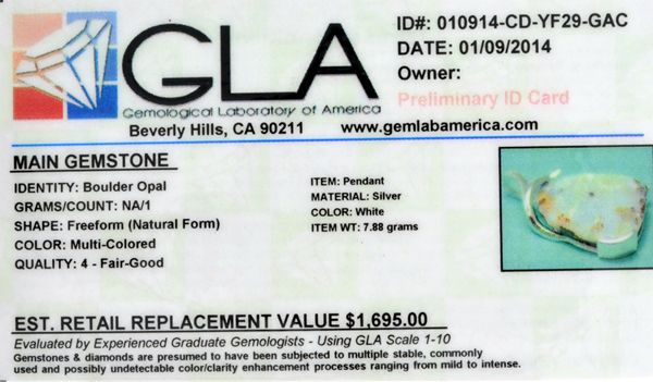7.88Grams Natural Form Boulder Opal And Sterling Silver Pendant