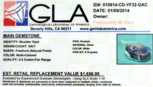 9.12Grams Natural Form Boulder Opal And Sterling Silver Pendant