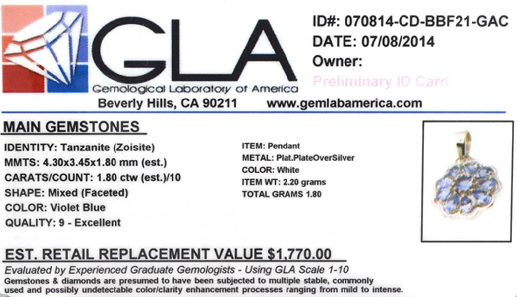 1.80CT Mixed Cut Tanzanite And Platinum Over Sterling Silver Pendant