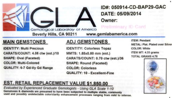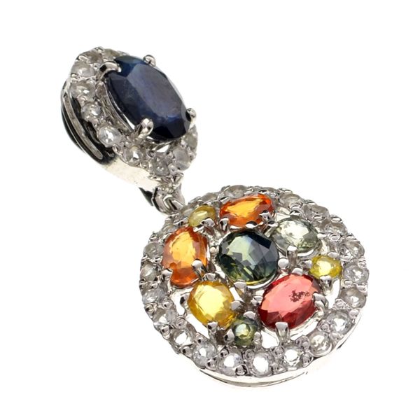4.08CT Multi-Precious Gemstone And Topaz Platinum Over Sterling Silver Pendant