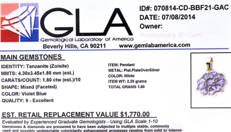 APP: 1.8k Fine Jewelry 1.80CT Mixed Cut Tanzanite And Platinum Over Sterling Silver Pendant