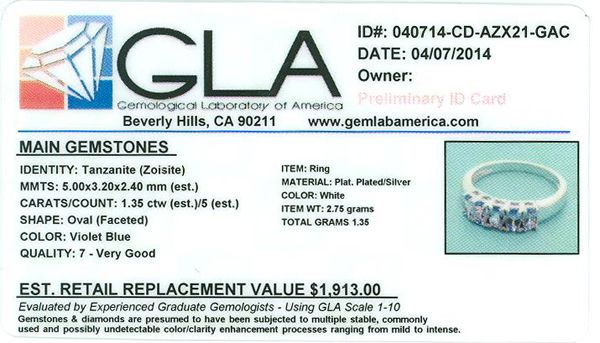 1.35CT Oval Cut Tanzanite And Platinum Over Sterling Silver Ring
