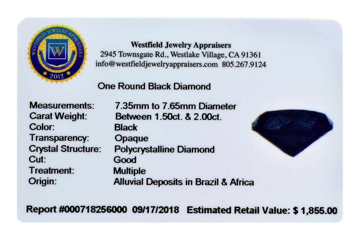 1.50CT - 2.00CT Round Cut Black Diamond Gemstone