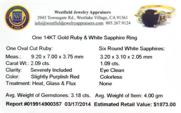 14 kt. Gold, 2.09CT Oval Cut Ruby And White Sapphire Ring