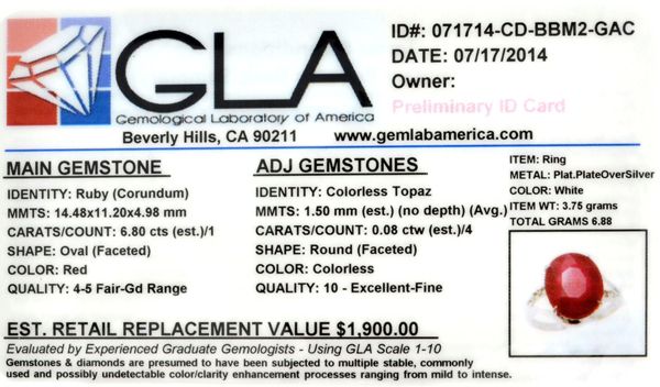 6.80CT Ruby And Topaz Platinum Over Sterling Silver Ring