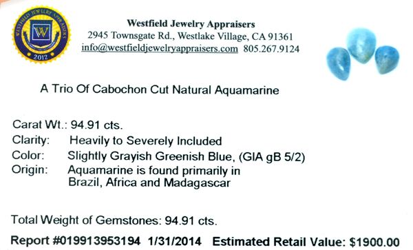 94.91CT Oval Cut Cabochon Natural Aquamarine Parcel