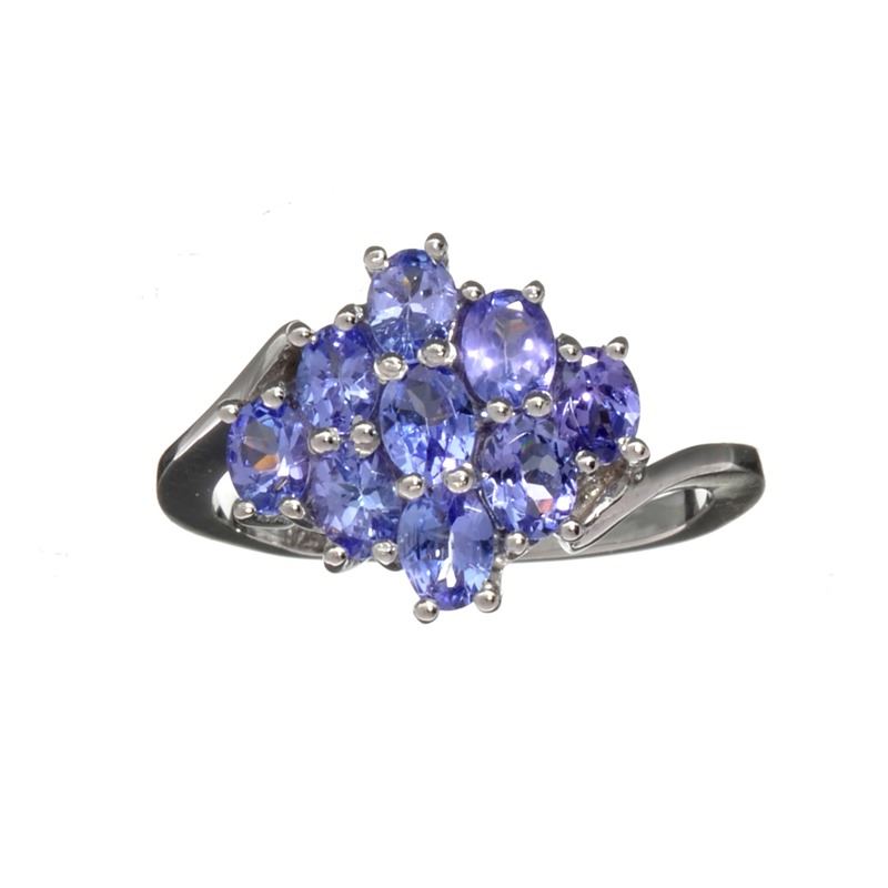 Fine Jewelry 1.80CT Oval Cut Violet Blue Tanzanite And Platinum Over Sterling Silver Ring