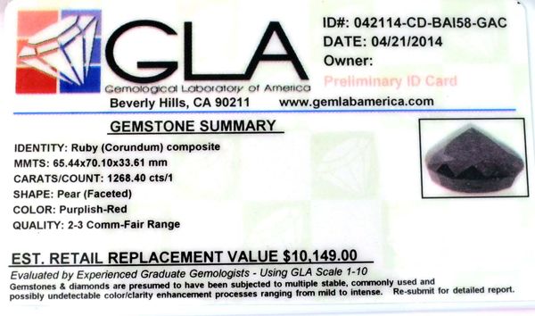 1268.40CT Pear Cut Ruby Gemstone