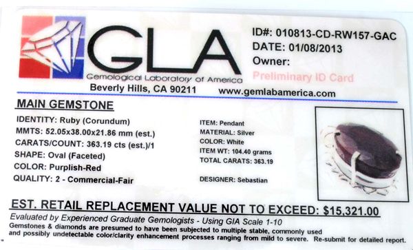 Designer Sebastian 363.19CT Oval Cut Ruby and Sterling Silver Pendant