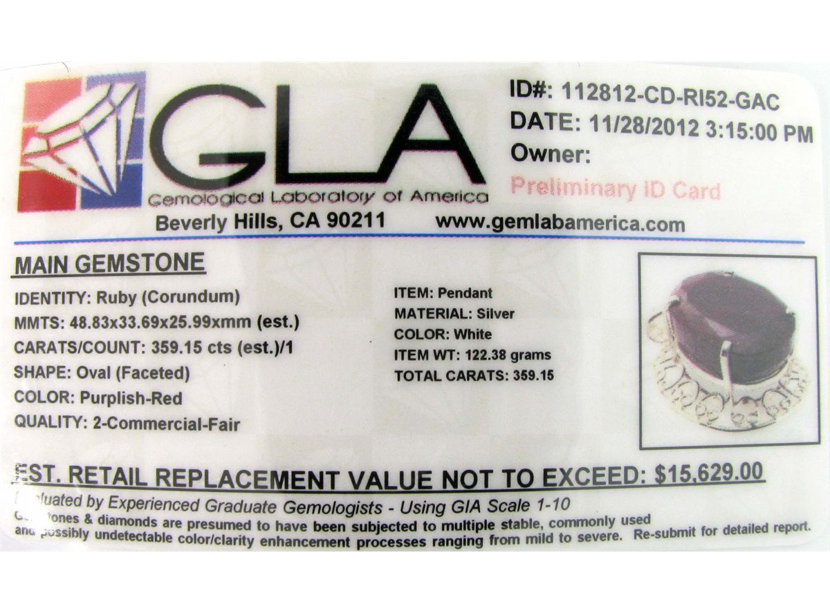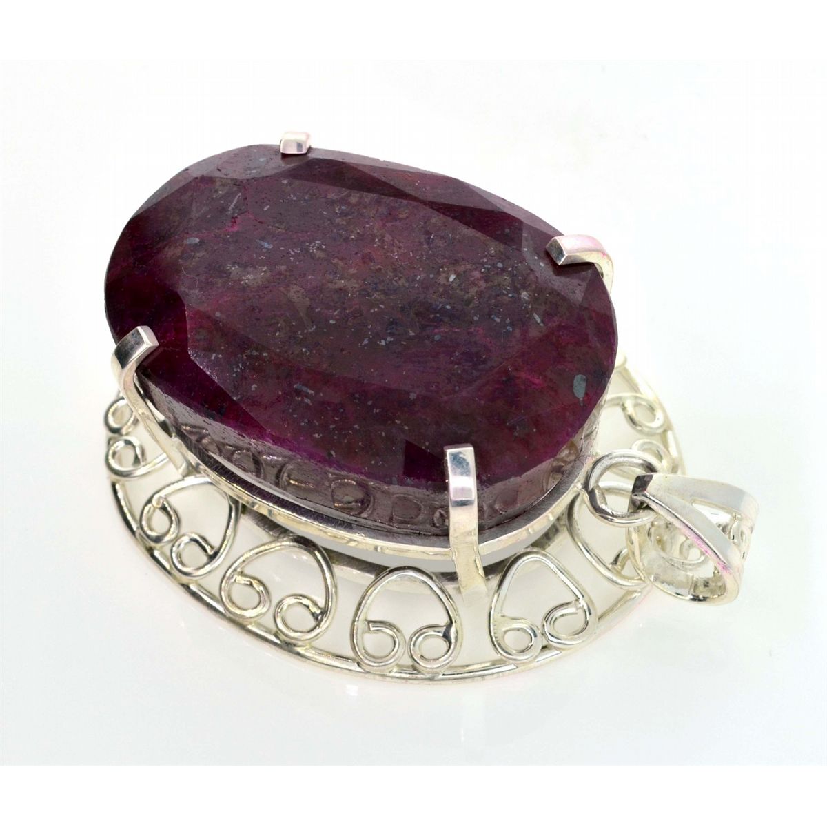 Designer Sebastian 359.15CT Oval Cut Ruby and Sterling Silver Pendant