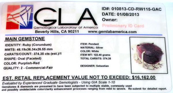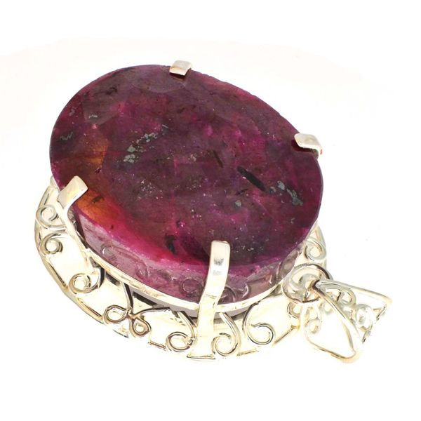 Designer Sebastian 374.35CT Oval Cut Ruby and Sterling Silver Pendant