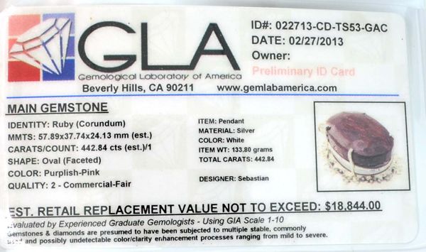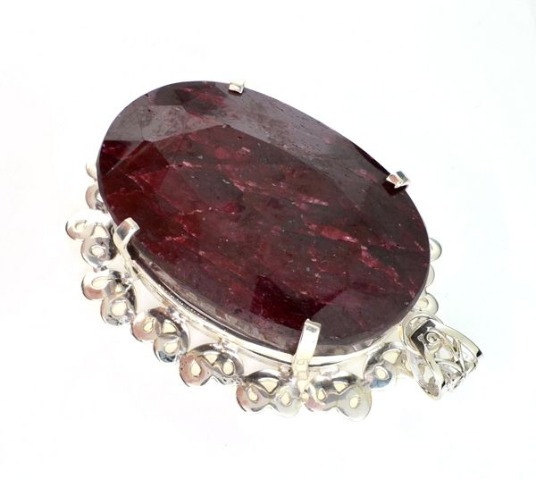 Designer Sebastian 442.84CT Oval Cut Ruby and Sterling Silver Pendant