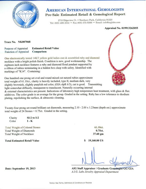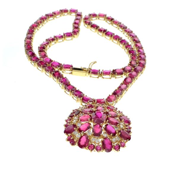 *14 kt. Gold, 61.10CT Ruby And 0.75CT Diamond Necklace