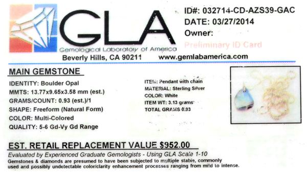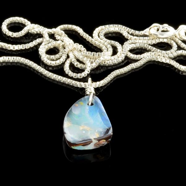0.93Gm Natural Freeform Boulder Opal And Sterling Silver Pendant With Chain