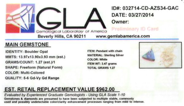 1.27Gm Natural Freeform Boulder Opal And Sterling Silver Pendant With Chain
