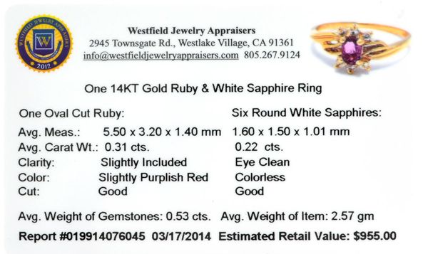 14 kt. Gold, 0.31CT Oval Cut Ruby Ring