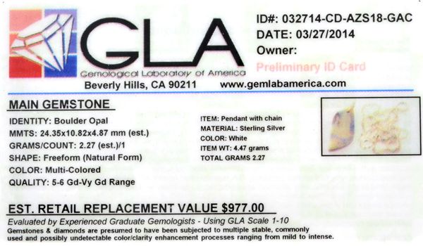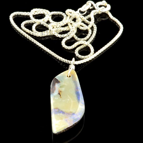 2.27Gm Natural Freeform Boulder Opal And Sterling Silver Pendant With Chain