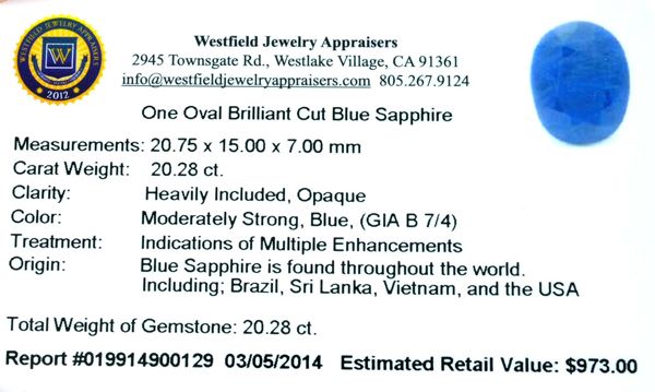 20.28CT Oval Cut Blue Sapphire Gemstone