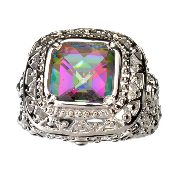 5.15CT Square Cut Mystic Topaz And Platinum Over Sterling Silver Ring