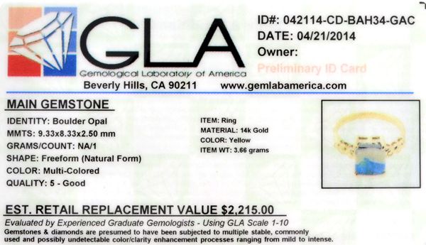 14 kt. Gold, Natural Freeform Boulder Opal Ring