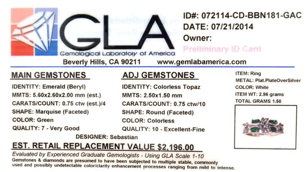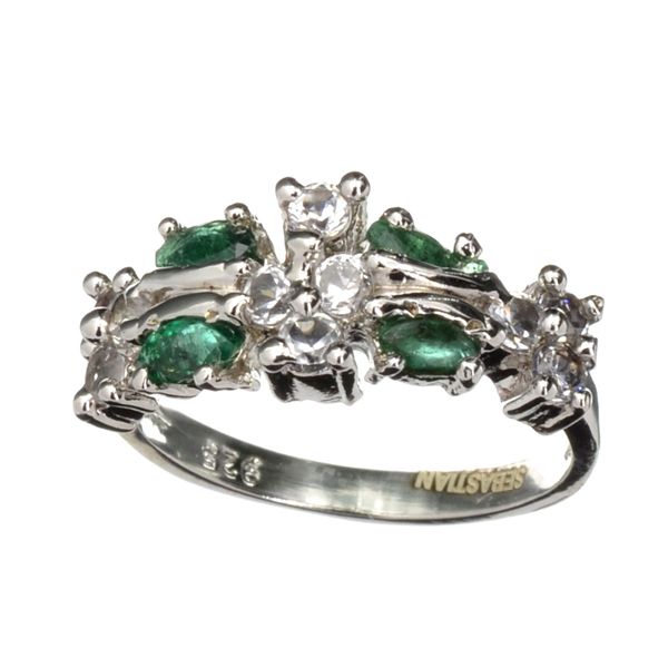 Designer Sebastian 0.75CT Green Beryl Emerald And Topaz Platinum Over Sterling Silver Ring