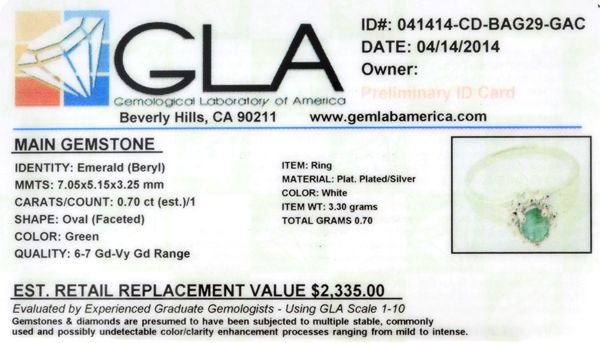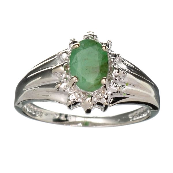 0.70CT Oval Cut Green Beryl Emerald And Platinum Over Sterling Silver Ring