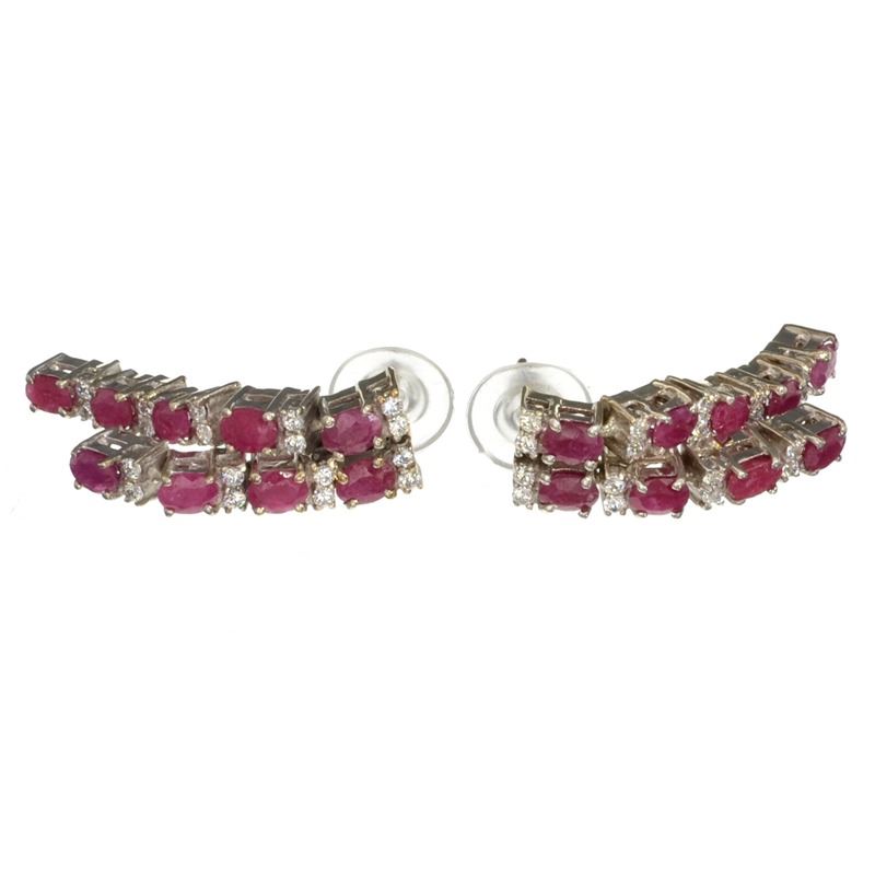 Fine Jewelry 3.05CT Ruby And Quartz Platinum Over Sterling Silver Earrings
