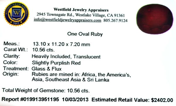 10.56CT Oval Cut Ruby Gemstone