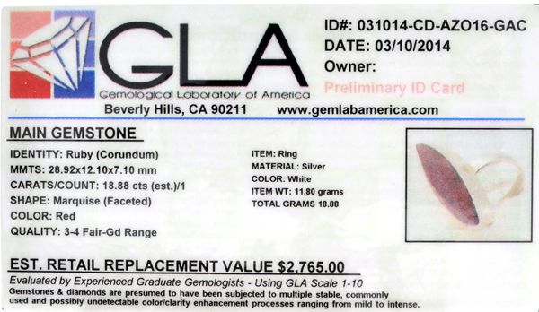 18.88CT Marquise Cut Ruby And Sterling Silver Ring